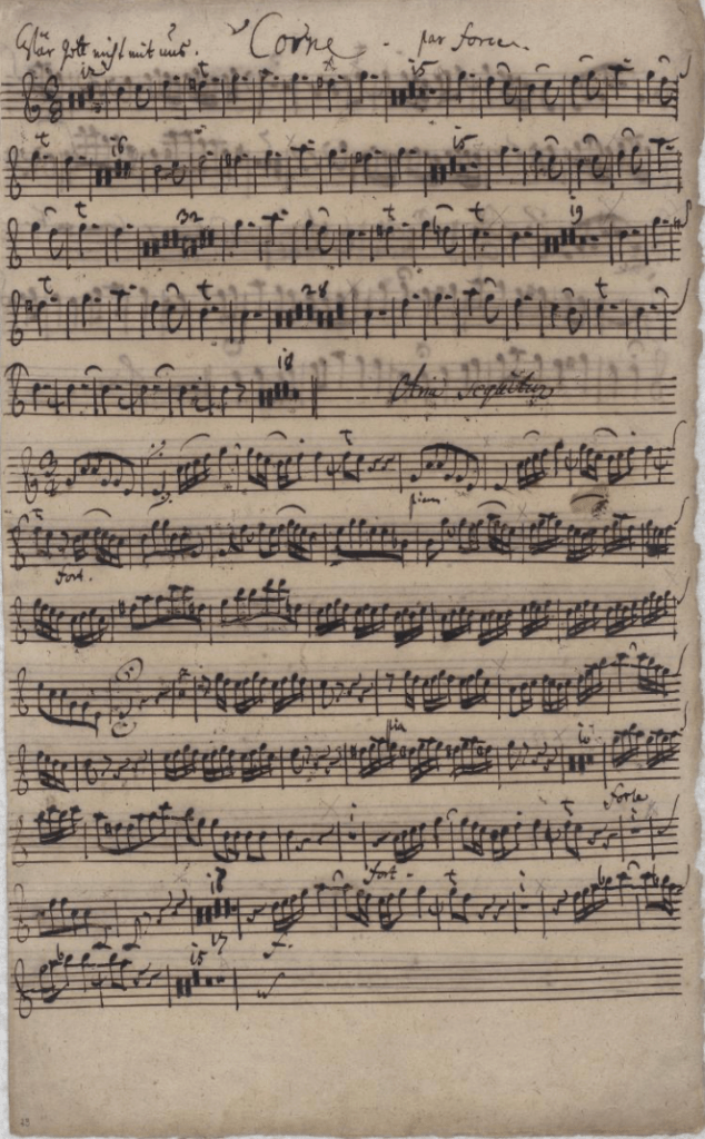 Und auch wenn vielfach ausgesagt wird, dass es bei Bach eine Systematik für die Verwendung des relativ bekannten Instrumenten-Namens „Corno da caccia“ gegeben hätte – lässt sich dies tatsächlich nicht verifizieren! Und auch der Name „Waldhorn“ taucht erstmals auf dem von C.P.E.Bach nach der Erbteilung (der Bachsohn C.P.E. Bach erbte die Kantatenjahrgänge I und II) neu geschriebenen Titelblatt zur Baunerkantate BWV 212 auf – vorher in keinem einzigen Fall.