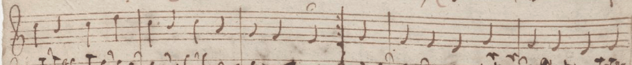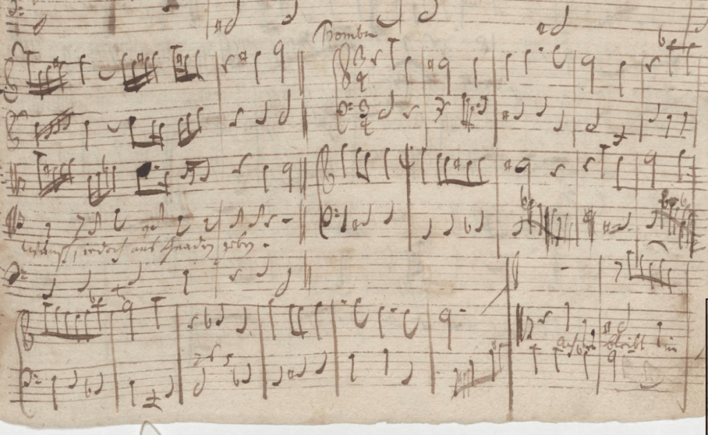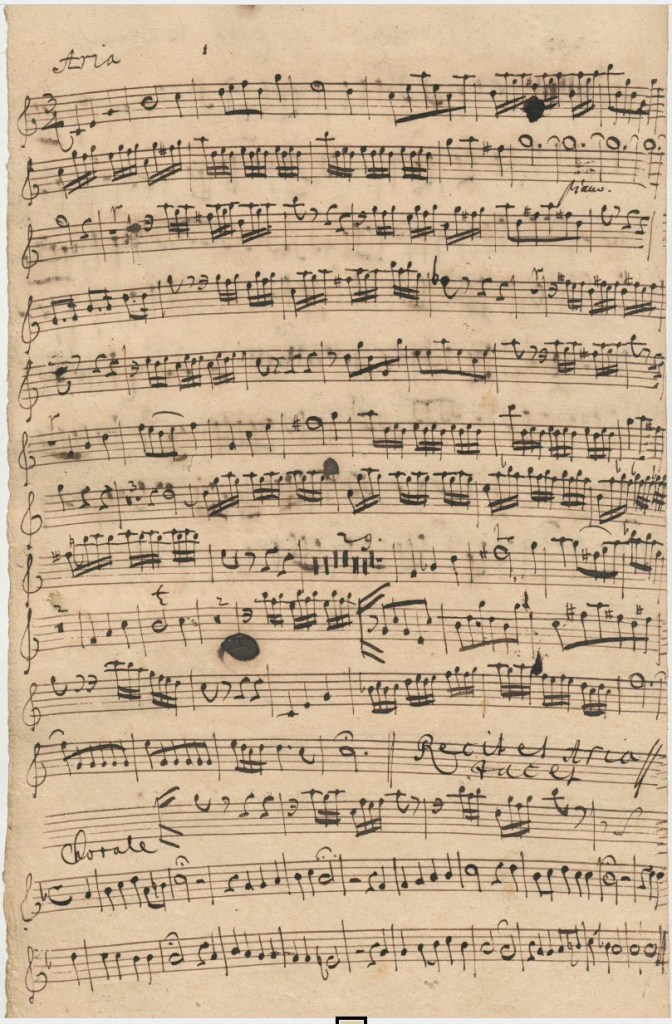 Die Zeilen 1-10 des Eingangschores und (auf der zweiten Seite) der obligaten Aria, die sich beide auf den Naturtonvorrat beschränken, wurden vom Kopisten Johann Andreas Kuhnau aufgeschrieben.