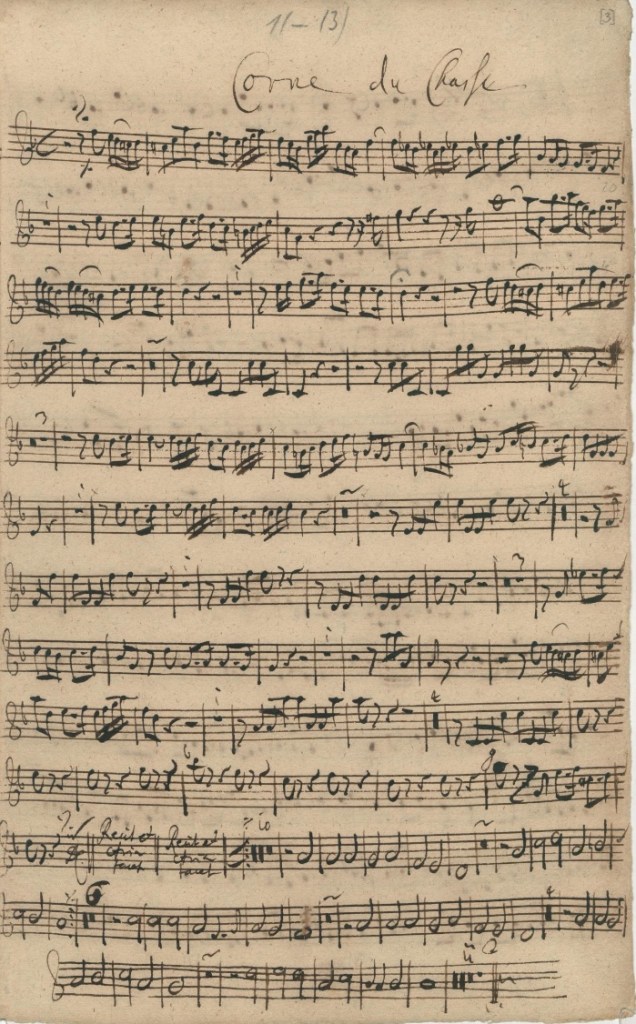 Zu einem unbekannten späteren Zeitpunkt wurde der Zusatz „da Caccia“ nachgetragen. Die für die damalige Zeit „modische“ Intrumentenbezeichnung (Corno) „da Caccia“ ist (wie die „Corno du Chasse“-Stimme von BWV 89 und 109 oder die „Corno“-Stimme in BWV 136) ein eindeutiger Hinweis, dass derartigen Partien NICHT mit einen Cornetto besetzt wurden (siehe u.a. auch die Erläuterungen zu BWV 68 und 95). Es konnte keinerlei Systematik in der Verwendung der Begriffe „da Caccia“, „du Chasse“, „par force“ usw. in den Werken Johann Sebastian Bachs ermittelt werden: manchmal steht in der Partitur eine andere (modische) Variante des Horn-Namens als in der Stimme. Wenn ein Horn verlangt wird ist immer eindeutig ein Horn als solches bezeichnet – in Abgrenzung zur Trompete (Tromba), zur Posaune (Trombona) und zum Zinken (Cornetto). Übrigens: In keinem einzigen bekannten Fall findet sich in Bachs Noten der Begriff „da Caccia“ zusammen mit dem Namen „Tromba“.