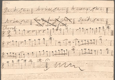 Die Hornstimmen des Eingangschores wurden vom Kopisten Samuel Gottlieb Heder (1713 – ?) aufgeschrieben, während J.S. Bach jeweils die Tacet-Eintragungen und den Schlußchoral notierte.