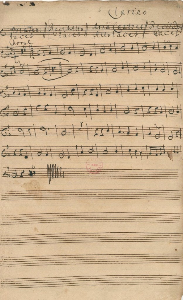 Die ausradierte, aber noch erkannbare Instrumentenbezeichnung „Clarino“ stammt vom Februar 1723. Es handelt sich um Bachs Bewerbungs-Kantate. Bach hatte sie 1724 noch einmal mit geänderter Besetzung (ein Zink und drei Posaunen) zur Aufführung gebracht. Die Clarino-Stimme der Bewerbungskantate wurde von Johann Andreas Kuhnau (Neffe von Bachs Vorgänger im Amt, Johann Kuhnau) geschrieben. Von C. P. E. Bach stammt in dieser Stimme die später hinzugefügte Bezeichnung „Canto“ und C. F. Zelter schrieb nachträglich „ripieno“ sowie die Textunterlegung der Stimme.