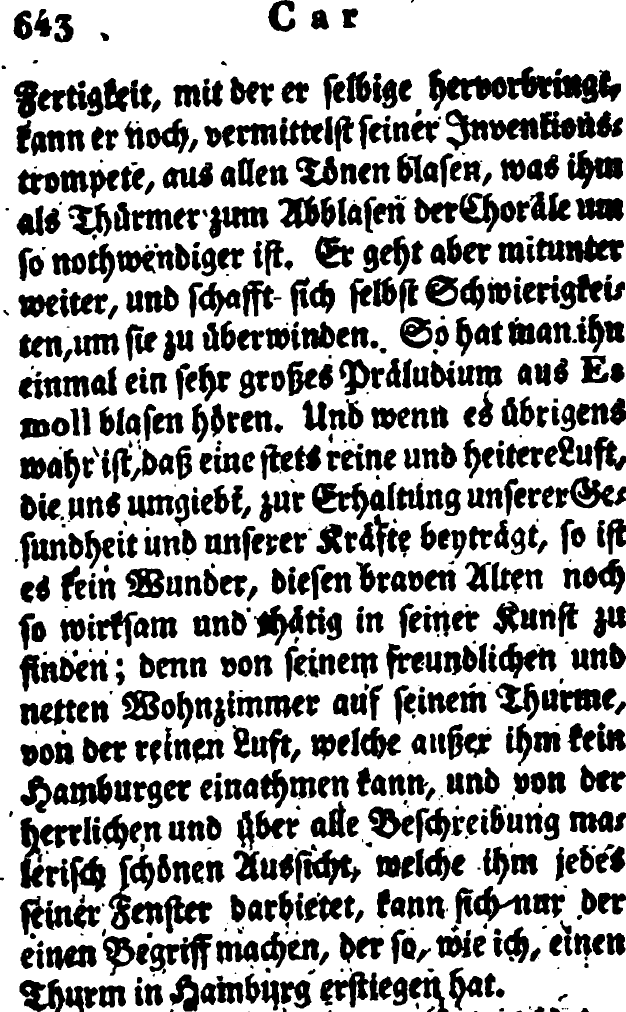 „… dass man die Trompeten auf Posaunen-Art, wie heutiges Tages die Thürmer und Stadt-Pfeiffer fast alle haben … so dass ein dergleichen Instrumemt einer kleinen Alt-Posaune sehr nahe kommt…“ (Autographensammlung Grasik, ehemalige kgl. Bibliothek Berlin, Mappe XXX)