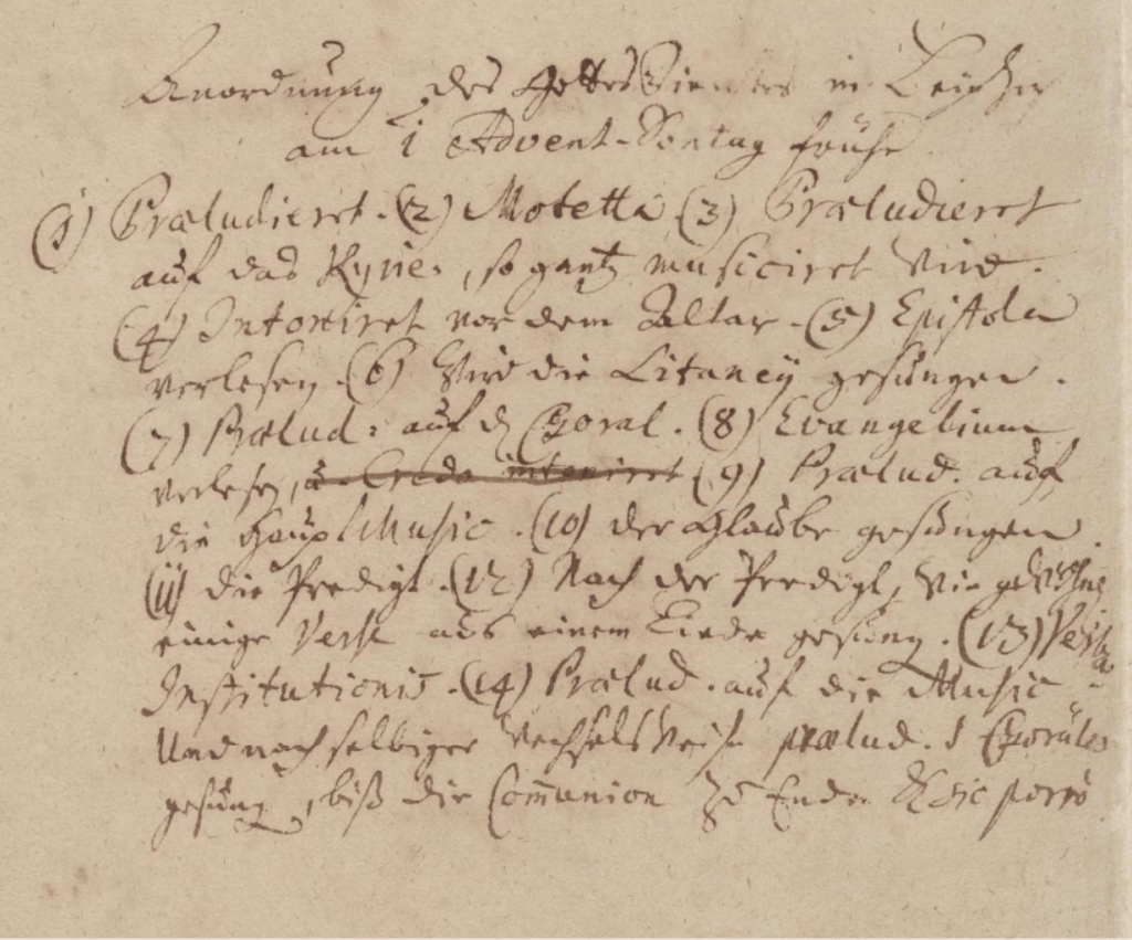 Die nachfolgend präsentierten Stimmen und Partituren sind chronologisch geordnet. Sie wurden, mit Ausnahme der Kuhnau-Kantate, allesamt der öffentlich zugänglichen Dokumenten-Präsentation „Bach digital“ des Bach-Archivs Leipzig entnommen.